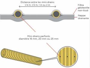 - les mini drains perforés permettent de drainer et d’évacuer rapidement les liquides (eaux, lixiviats) ou les gaz vers l’exutoire désigné lors de la conception.